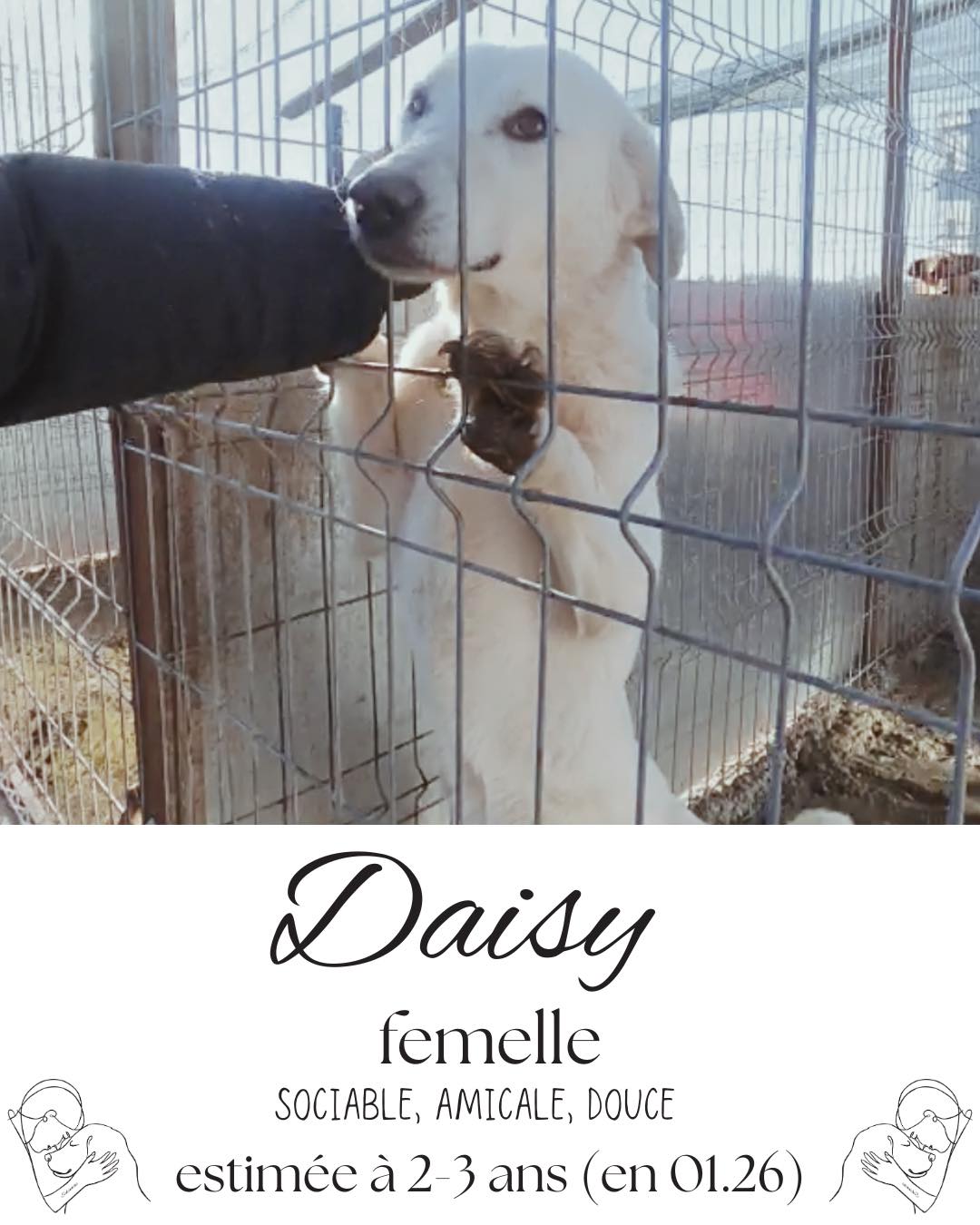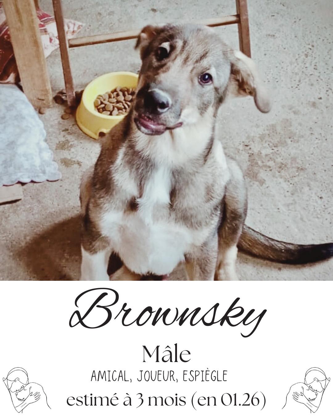 Nos chiens sont proposés à l’adoption moyennant un don de soutien, qui nous permet de poursuivre notre travail sur le terrain et de sauver toujours plus de vies.